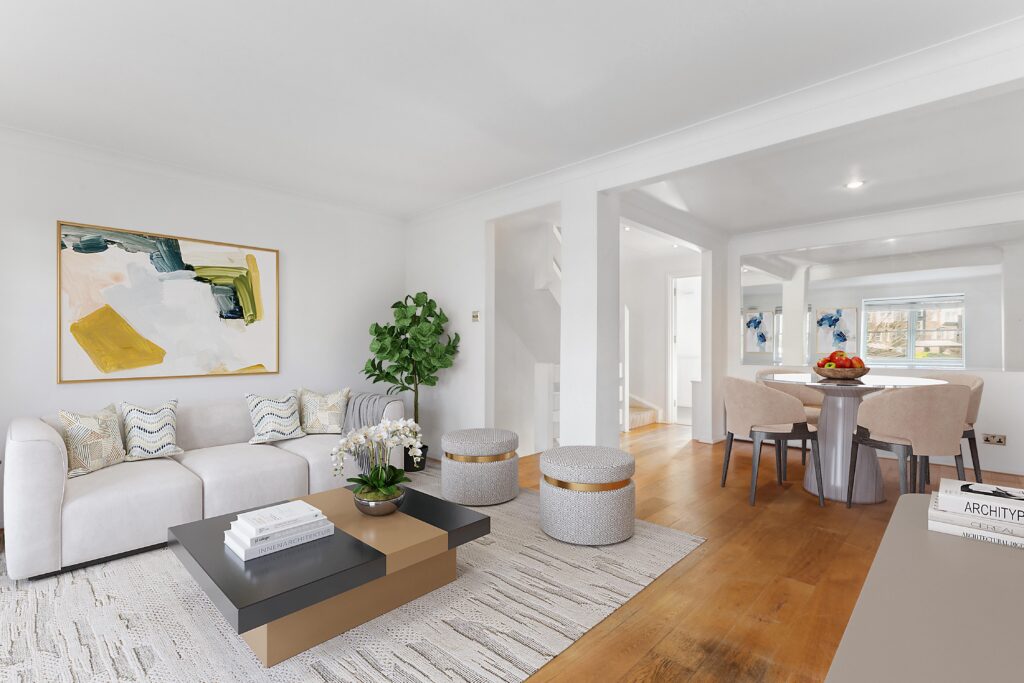 A fantastic 4 bedroom, 2 bathroom freehold house within the ever popular Morgans Walk development. The property is one of the larger style houses within Morgans Walk, extending over 3 storeys to around 1,465 square feet, with the potential to extend further into the loft having recently become an option (subject to the usual permissions). The property benefits from a South facing garden of over 275 square feet as well as parking on the driveway with the integral garage having been converted to a home gym. Morgans Walk occupies 9 acres of prime riverside land in a superb position by Battersea Bridge. The low-density development and attractive communal garden areas combine to create an oasis of unusual tranquillity for such a central London location. Battersea Park with its 200 acres of open spaces and excellent leisure facilities lies just over 500 metres away and just across the river there is access to the tube network at South Kensington & Sloane Square stations. *Please note that while the dimensions of all rooms and photographs remain unedited, a digital furniture package has been added to some shots.